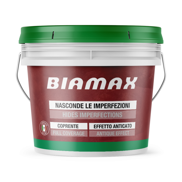Структурна поверхня фарби Biamax (Біамакс) може мати дрібний пісочок (03) або великий (07), це впливає на тактильні, візуальні відчуття, а також на витрату та ціну фарби. Наноситься на адгезійний ґрунт Il Primer. Можна отримати неоднорідну декоративну фактуру, якщо наносити матеріал пензлем, або щільну шорстку стіну під час нанесення шпателем.